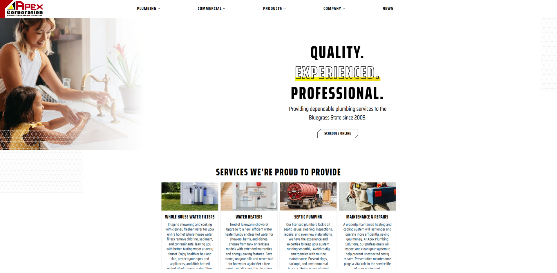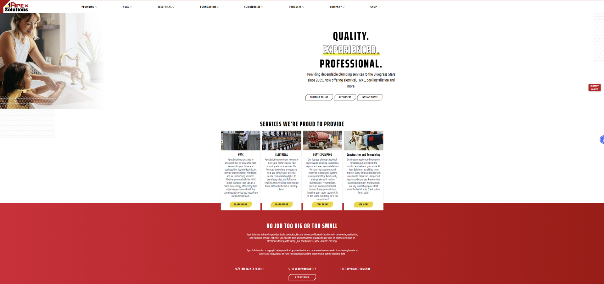 Challenge: This company was growing fast. After 16 years of serving primarily as a plumbing business, Apex Solutions grew to include HVAC. After several months, they included electrical services, then foundation repair and waterproofing. They realized they couldn’t function properly as Apex Plumbing Solutions since they weren’t just a plumbing company anymore. The goal was to continue growing, and doing so meant refreshing the brand to be able to serve all and any divisions now and in the future.